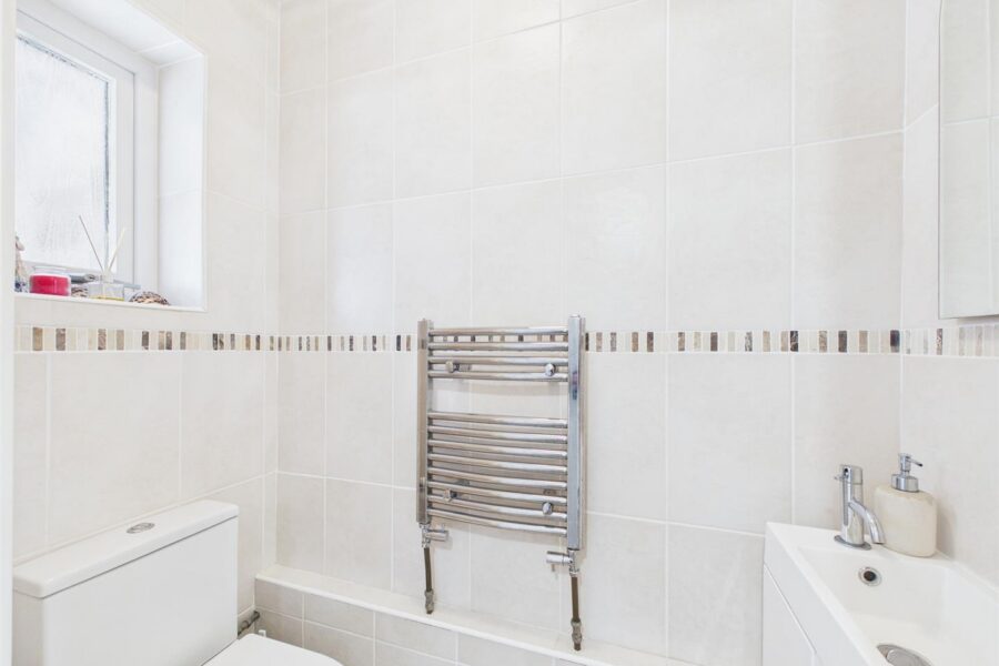 Beautifully presented throughout, the property comprises an inviting entrance porch leading into a welcoming hallway, a convenient cloakroom, a well-appointed front-aspect kitchen, and a spacious sitting/dining room to the rear. The living/dining room benefits from sliding doors that open directly onto the rear garden, creating a perfect space for both relaxing and entertaining.