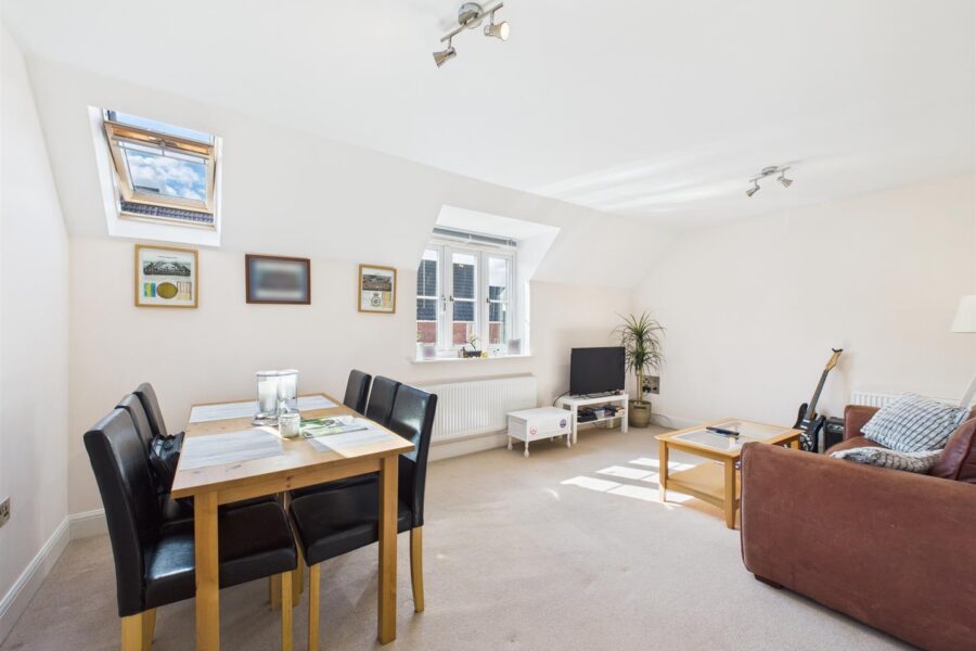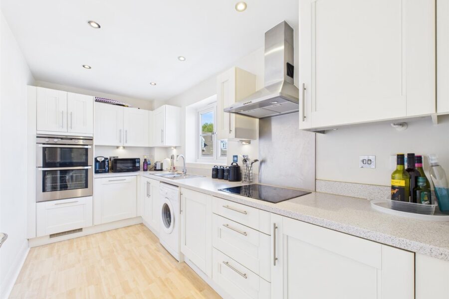 Accessed via a private ground floor entrance hall, the accommodation opens to a bright and airy landing leading to all principal rooms. The property features a generous lounge, a modern fitted kitchen, two well-proportioned double bedrooms, and a contemporary bathroom.