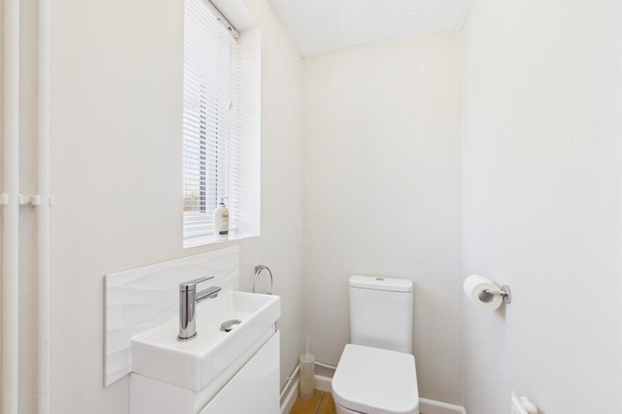The well-appointed accommodation is arranged over two floors and briefly comprises an entrance hall, cloakroom, fitted kitchen, and a spacious sitting/dining room to the ground floor. To the first floor, a landing provides access to two bedrooms, both benefitting from fitted wardrobes, together with a family bathroom.