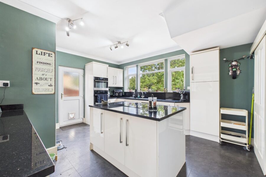 Parking is never a concern here, with space for up to five vehicles, complemented by a large detached garage and a store/workshop at the rear. This practical aspect is a significant advantage for families or individuals with multiple vehicles or hobbies.